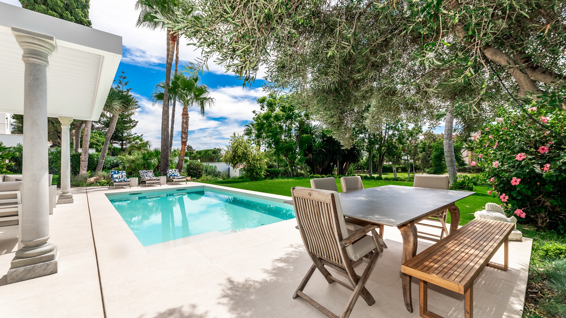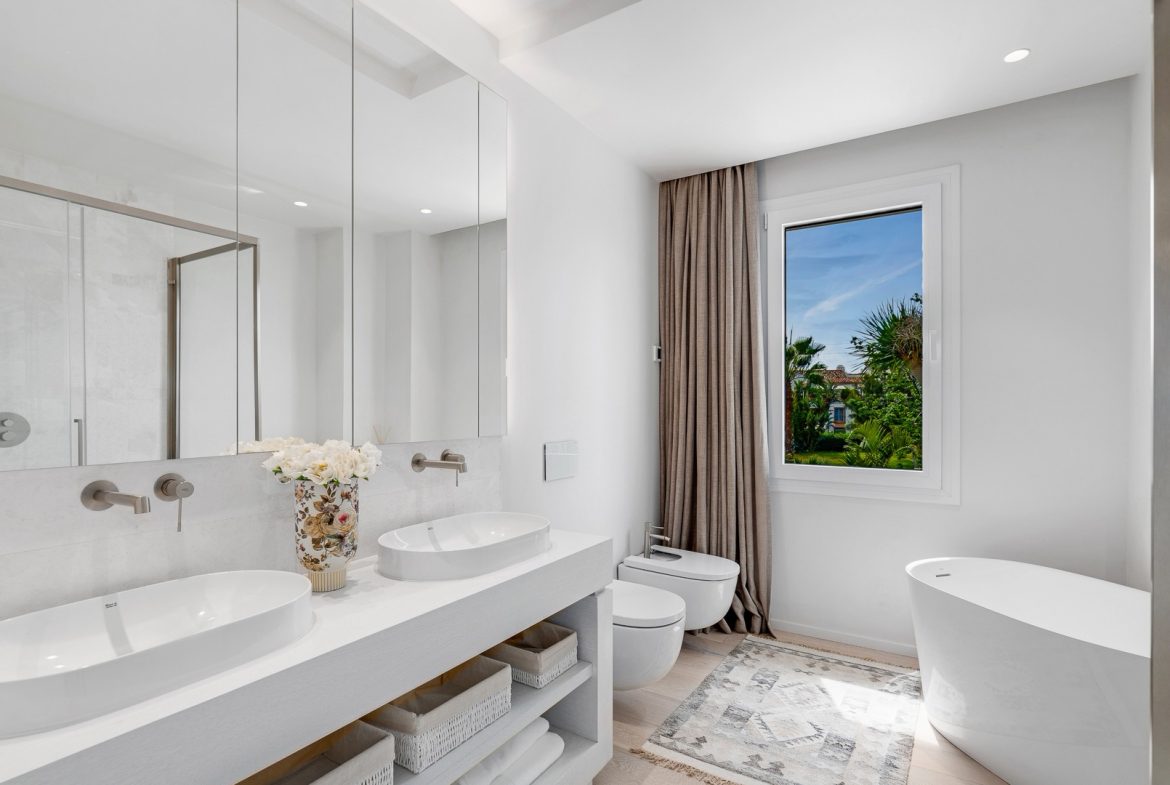 Guadalmina is renowned as one of the most elegant and well-established residential areas in Marbella and is characterized by large private homes bordering onto the green fairways of Real Club de Golf Guadalmina. Only 3 minutes from Puerto Banus and Marbella, It is centrally located. Guadalmina is divided into two zones with Guadalmina Baja on the beachside and Guadalmina Alta on the mountainside – The 36 hole golf course is a prominent feature on both sides. Though the area is recognized for a low density of spacious and luxury villas complimented with views to the Mediterranean Sea, or onto broad and luscious fairways, the area also offers quaint urbanizations of townhouses in Andalucía pueblo design. In addition, there are some attractive apartment buildings featuring white modernist design and views over the beautiful golf course that is a central part of the lifestyle. Among its many features, Guadalmina’s excellent infrastructure, offers a Commercial Centre where a plethora of restaurants, shops, banks, cafes and local business’ provide all the services and convenience, one could desire as well as three international schools in the area.